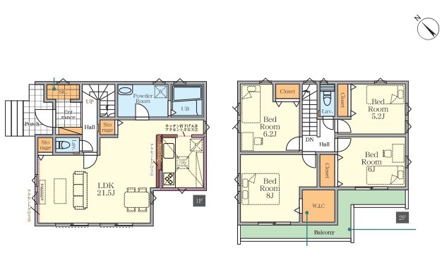 | 間取 | 4LDK (LDK21.5帖、洋室8帖、洋室6.2帖、洋室6帖、洋室5.2帖) | ||