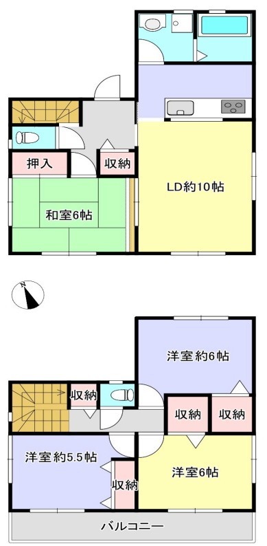 | 間取 | 4LDK (LD10帖、和室6帖、洋室6帖、洋室6帖、洋室5.5帖) | ||