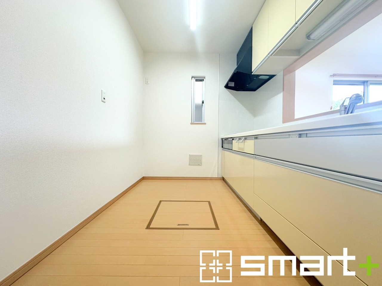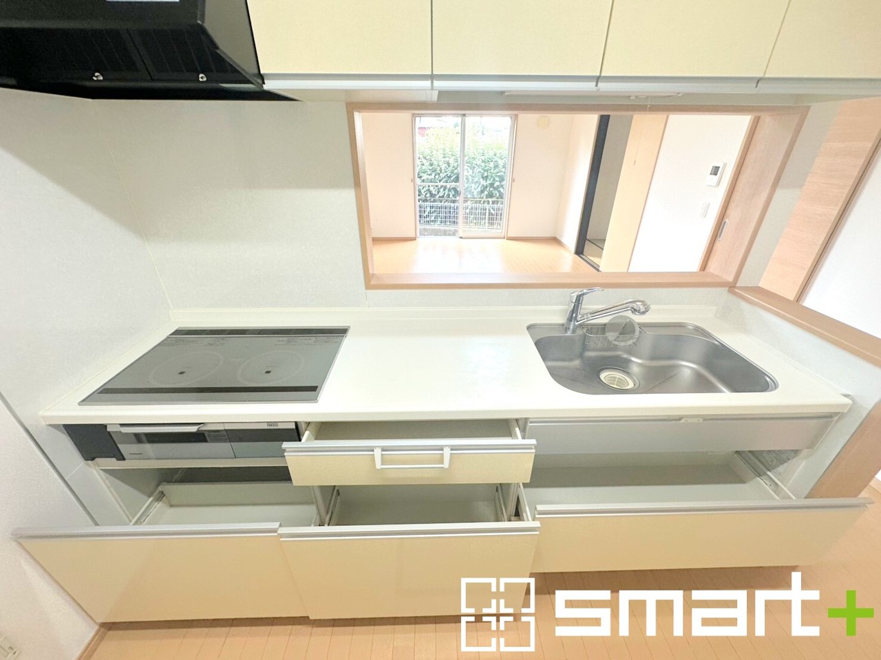 ~使い勝手の良いシステムキッチン~ ・料理がしやすい設計のキッチンでお料理もはかどりますね。 ・もちろんキッチン下部は収納になっておりますので、フライパンなども収納可能です。