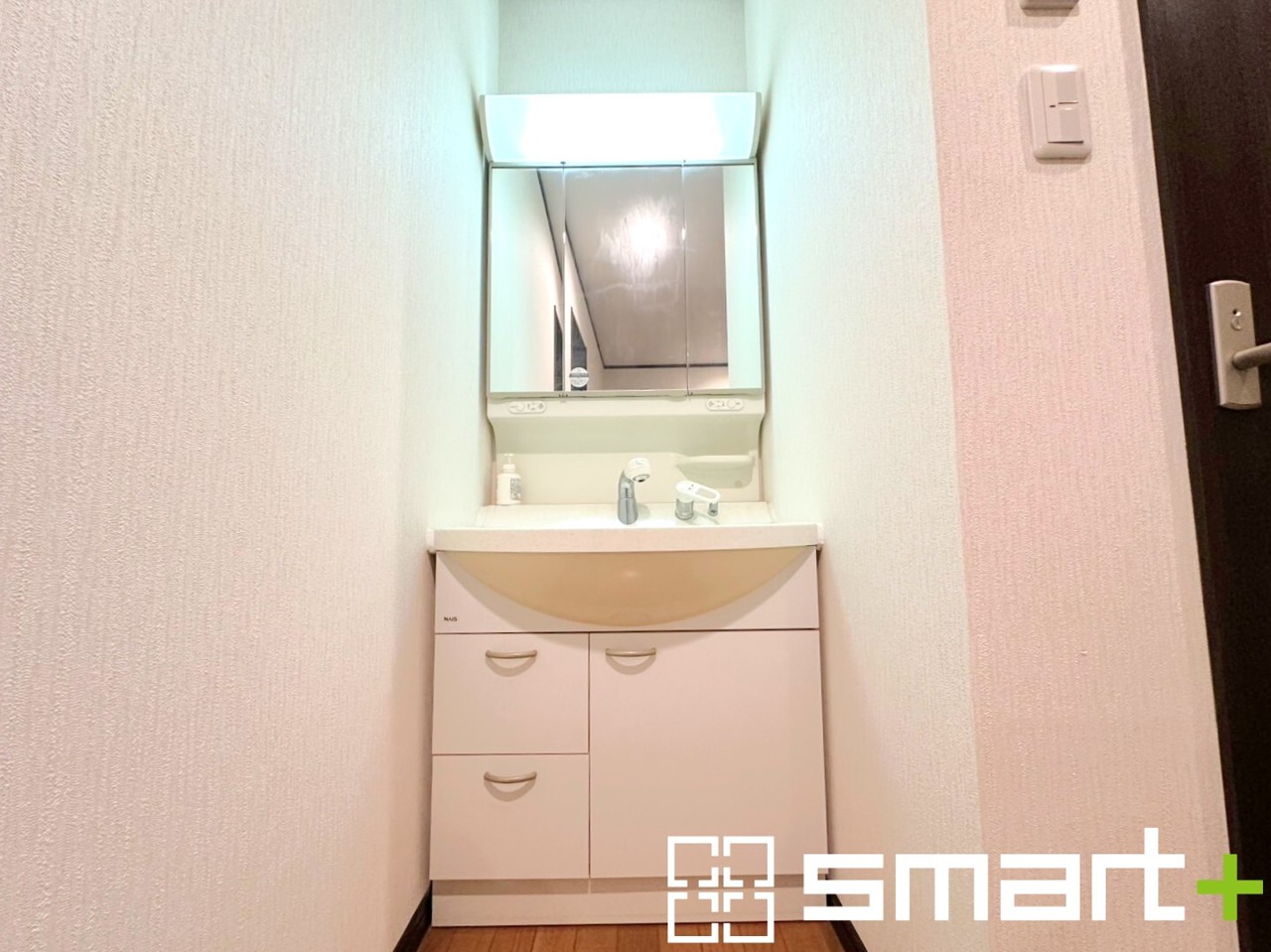 ~人気の三面鏡を採用~ ・洗面台は三面鏡仕様なので鏡の角度を変える事で頭の後ろの方までご確認可能です。 ・鏡の裏が収納になっておりますので、洗面台周りもスッキリと片付きます。