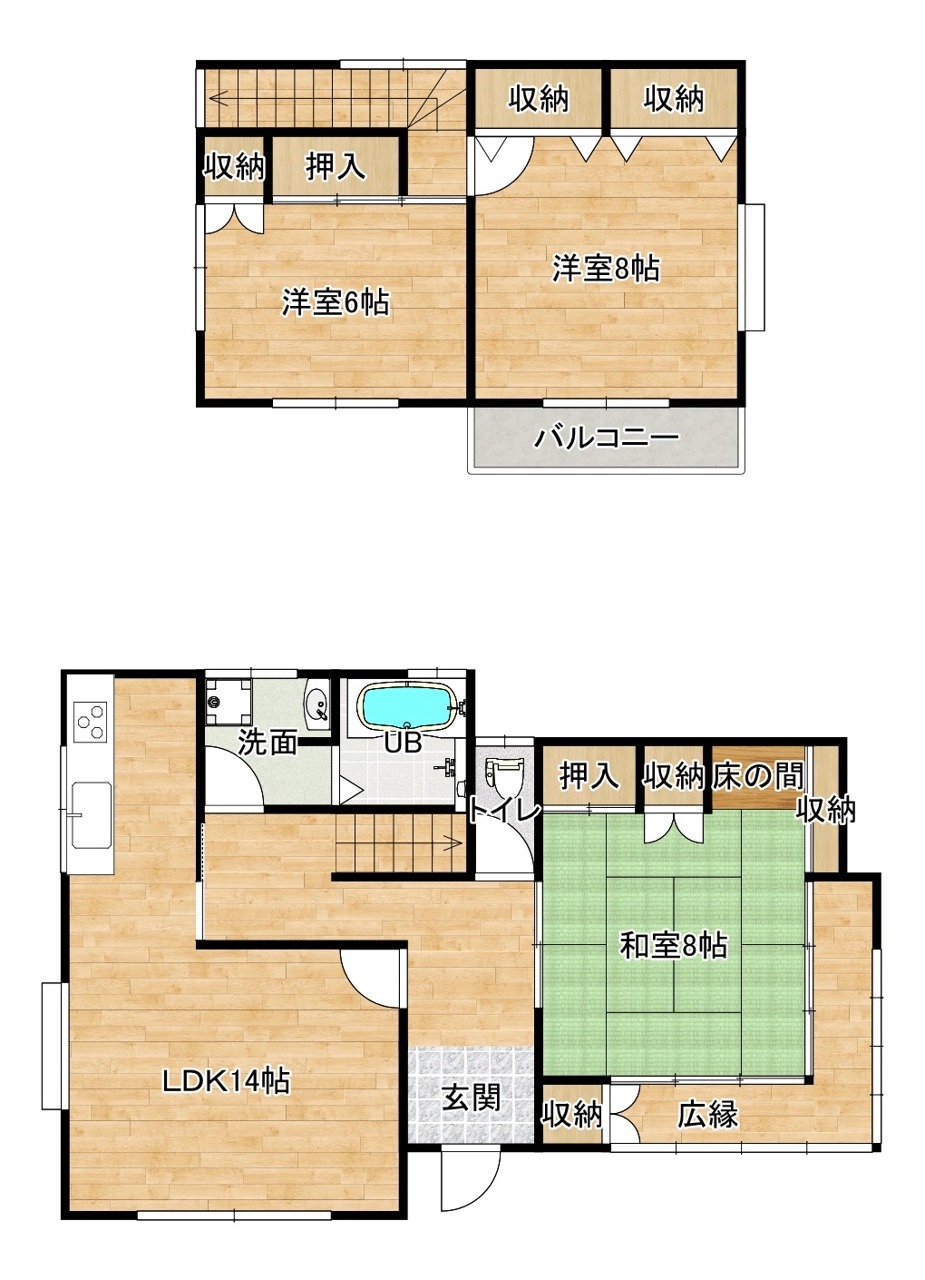 | 間取 | 3LDK (LDK14帖、和室8帖、洋室8帖、洋室6帖) | ||