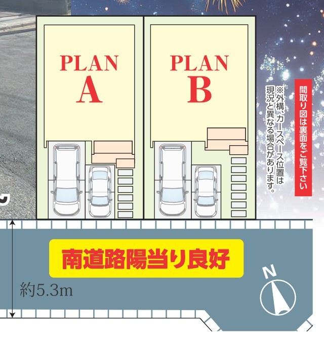 ~カースペース2台分確保~ ・各棟カースペースが2台分ございますので、車通勤の方にもお勧めのプランとなっております。 ・余裕の敷地で余裕のある新生活をお過ごしいただけます。