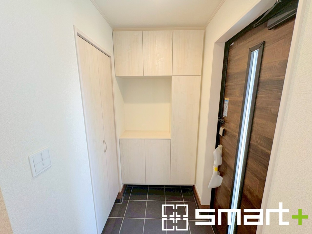 ~シューズインクローク付き~ ・玄関にはシューズインクローク完備。ベビーカーやゴルフバッグ、お子様のスポーツ用品など収納可能。 ・稼働式の棚で高さや大きさのあるものもスッキリしまえて快適。