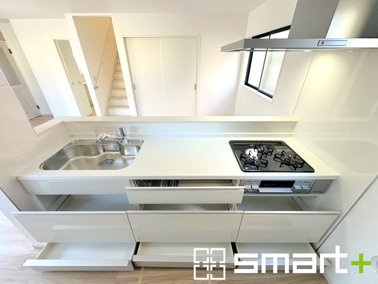 ~使い勝手の良いシステムキッチン~ ・料理がしやすい設計のキッチンでお料理もはかどりますね。 ・もちろんキッチン下部は収納になっておりますので、フライパンなども収納可能です。