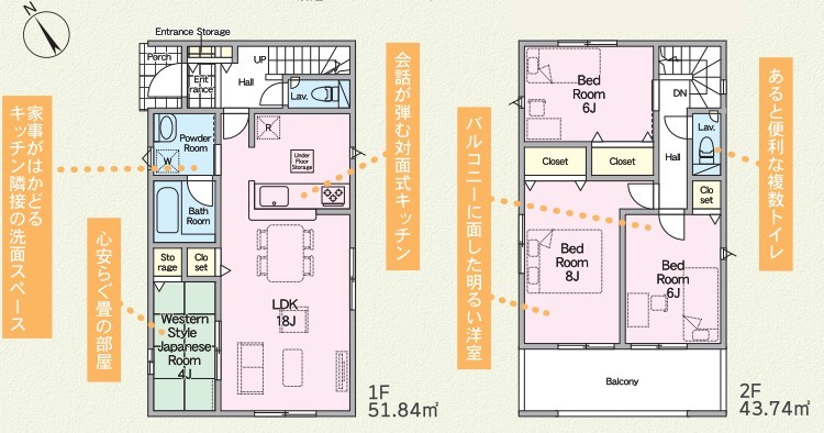 1号棟 ~水回り集中プランを採用~ ・キッチン・洗面など水回りを集中させることで家事のしやすい間取。 ・日々の事なので家事導線もご見学の際にぜひチェックしてみてください。
