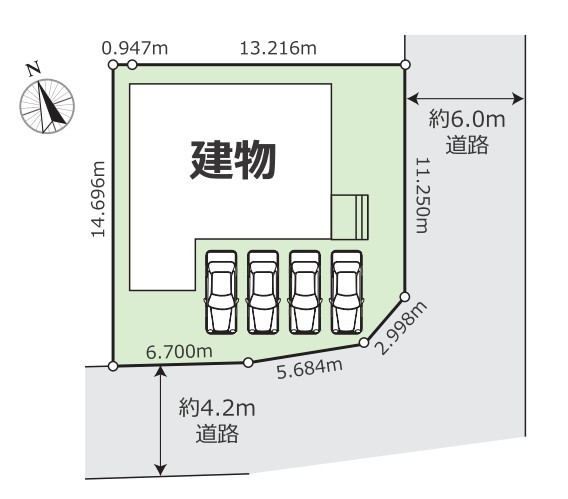 | 接道 | 南東側6M公道に11.25M接道 南西側4.1M公道に14M接道 |