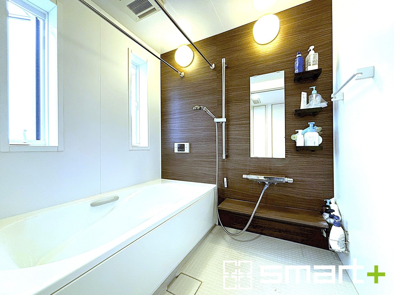 ~浴室乾燥機付きの浴室~ ・浴室には乾燥機が付いているので雨の日でも洗濯物を干すことが可能です。 ・水はけの良い床材など機能面も充実。マイクロバルなどオプションもご相談くださいませ。
