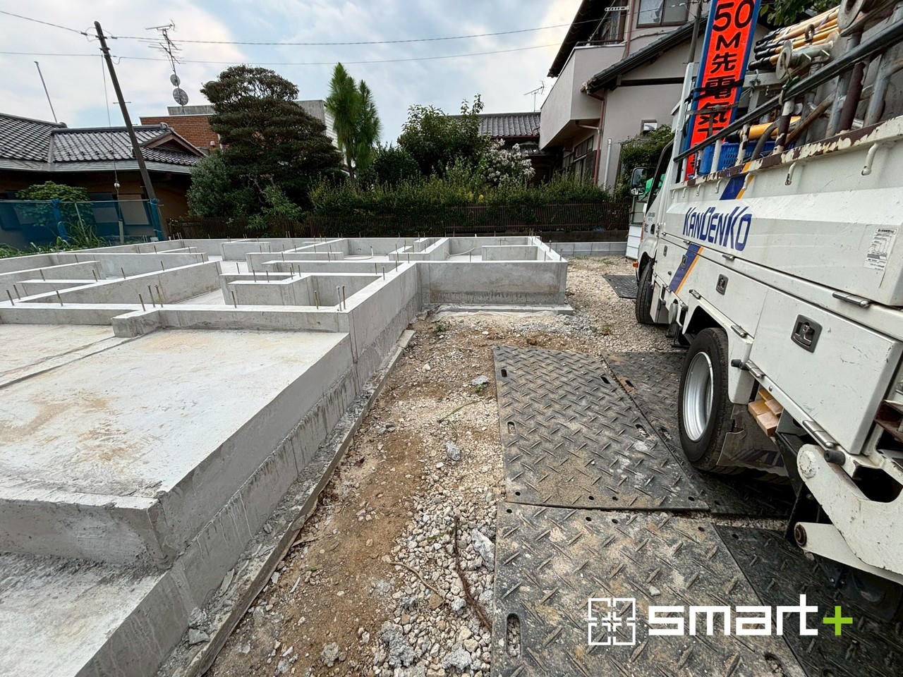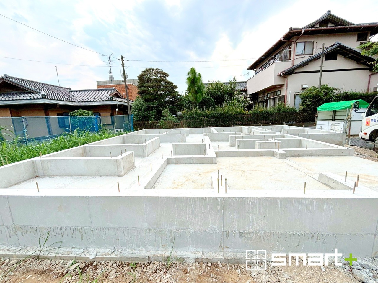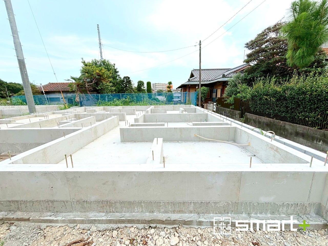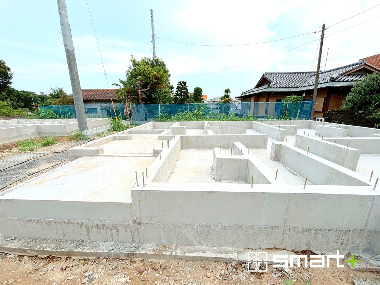 ~ベタ基礎でしっかりとした土台~ ・コンクリートの中に鉄筋を配し強度を高めた「ベタ基礎」を採用。 ・しっかりとした土台を造ったうえで、その上に建物が築造されていきます。