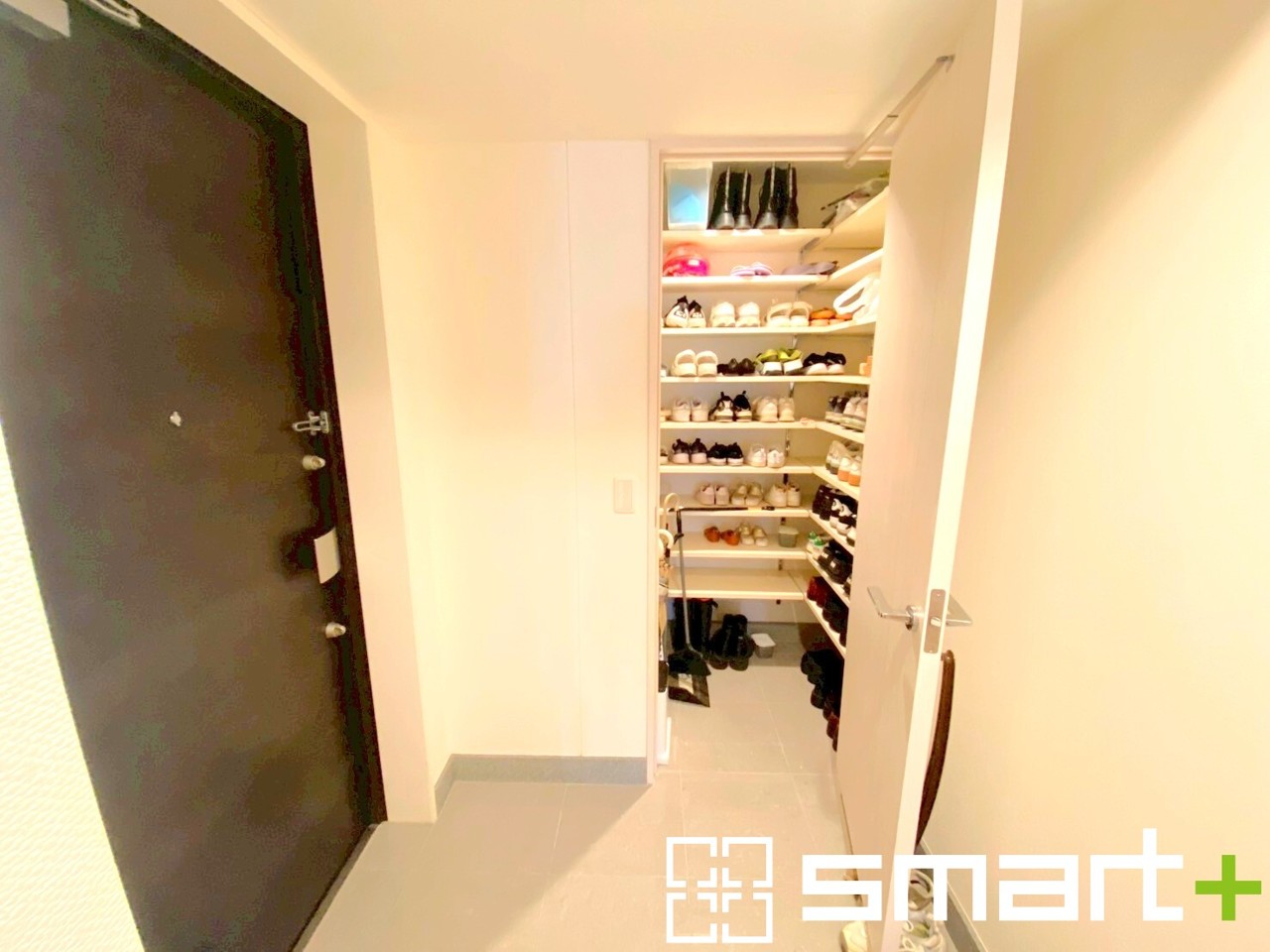 ~シューズインクロークをご用意~ ・追加の靴置きとしてはもちろん、ベビーカーやゴルフ・スキーなど趣味の用具の置場としてもご利用いただけます。 ・玄関が広がる事で開放感のある空間となります。