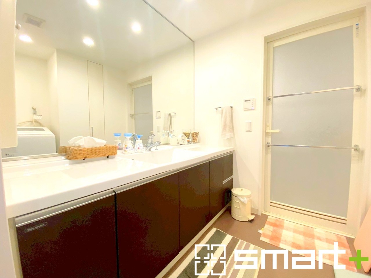 ~大きな鏡を採用した洗面台~ ・洗面台は一面の大型鏡を採用する事でホテルライクな仕様に。大型の鏡で朝の準備などもはかどりますね。 ・洗面台下のパイプスペースは収納としてご利用可能です。