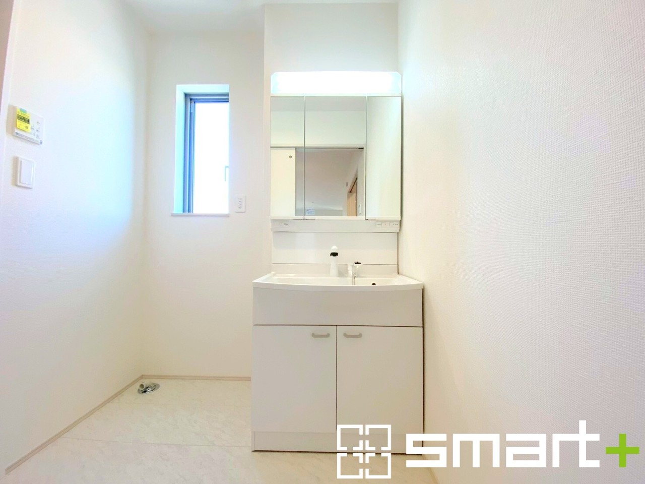 ~明るい洗面スペース~ ・窓から明るい陽が入り、気持ちよく朝の支度ができますね。 ・使い勝手の良い三面鏡タイプのシャワー付き洗面化粧台。鏡の裏に収納があるので洗面台周りもスッキリ。