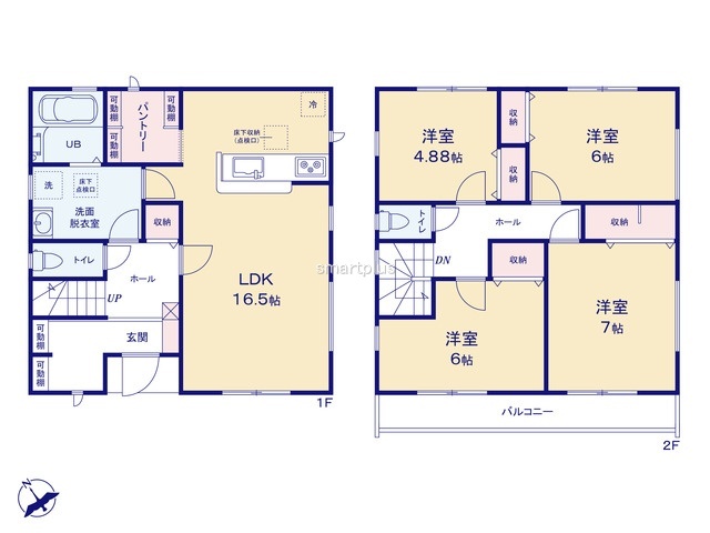 1号棟 ~使い勝手の良い4LDKプラン~ ・シンプルで使い勝手が良く、人気の高い4LDKのプランを採用。 ・収納もしっかりございますので、お家の中がスッキリと片付きます。