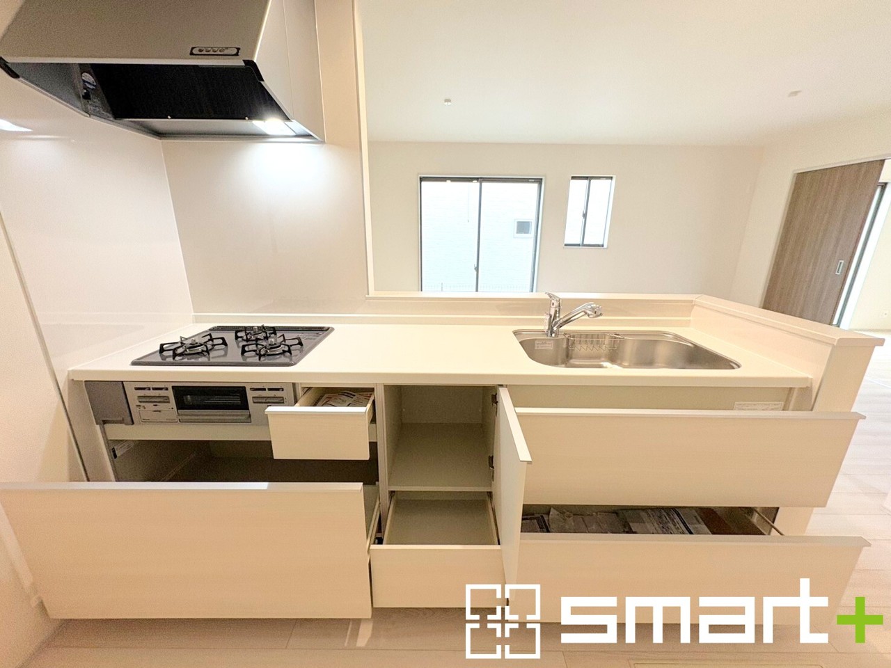 ~使い勝手の良いシステムキッチン~ ・料理がしやすい設計のキッチンでお料理もはかどりますね。 ・もちろんキッチン下部は収納になっておりますので、フライパンなども収納可能です。