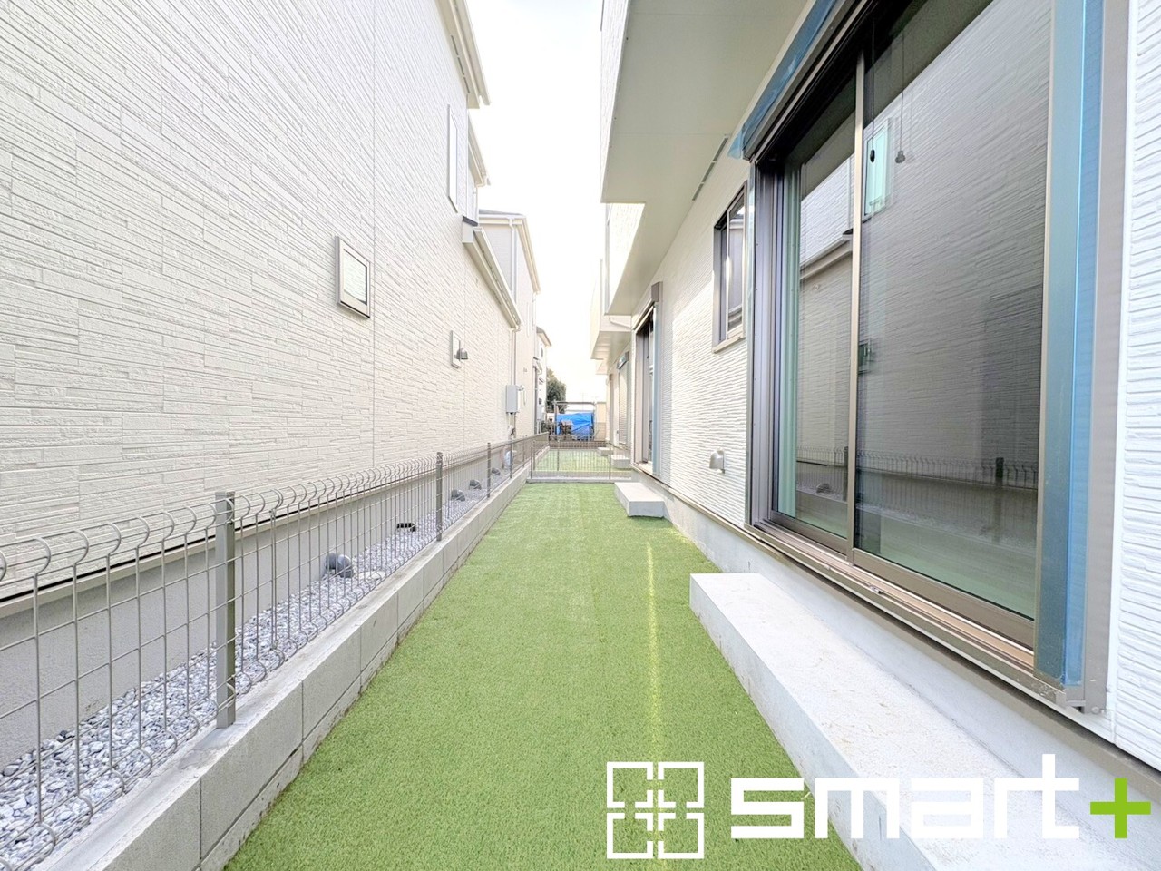 ~人工芝のある綺麗なお庭~ ・標準で人工芝を敷設しておりますので、見た目にも綺麗なお庭となっております。 ・人工芝の場合雑草が生えてこず、管理が楽なのも嬉しいポイントです。