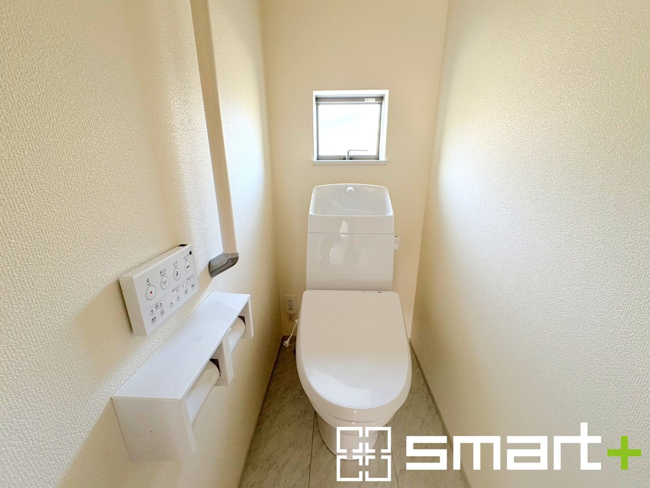 ~窓付きの明るいトイレ~ ・使用後や掃除の際に窓を開ければ、外からの新鮮な空気を取り込み素早く換気ができます。 ・埋め込み収納付きでストックや掃除用具もスッキリ片付きますね。