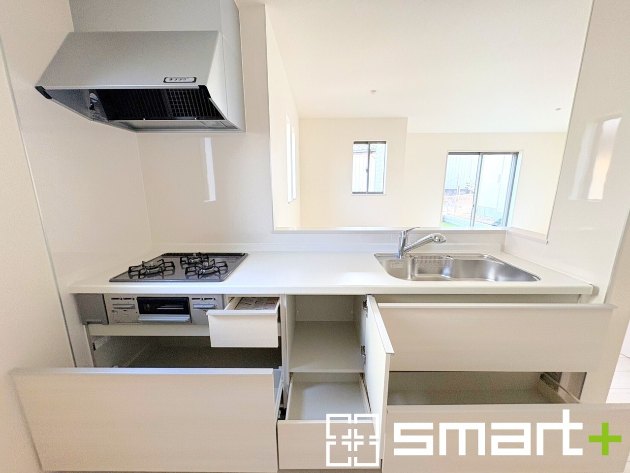 ~使い勝手の良いシステムキッチン~ ・料理がしやすい設計のキッチンでお料理もはかどりますね。 ・もちろんキッチン下部は収納になっておりますので、フライパンなども収納可能です。