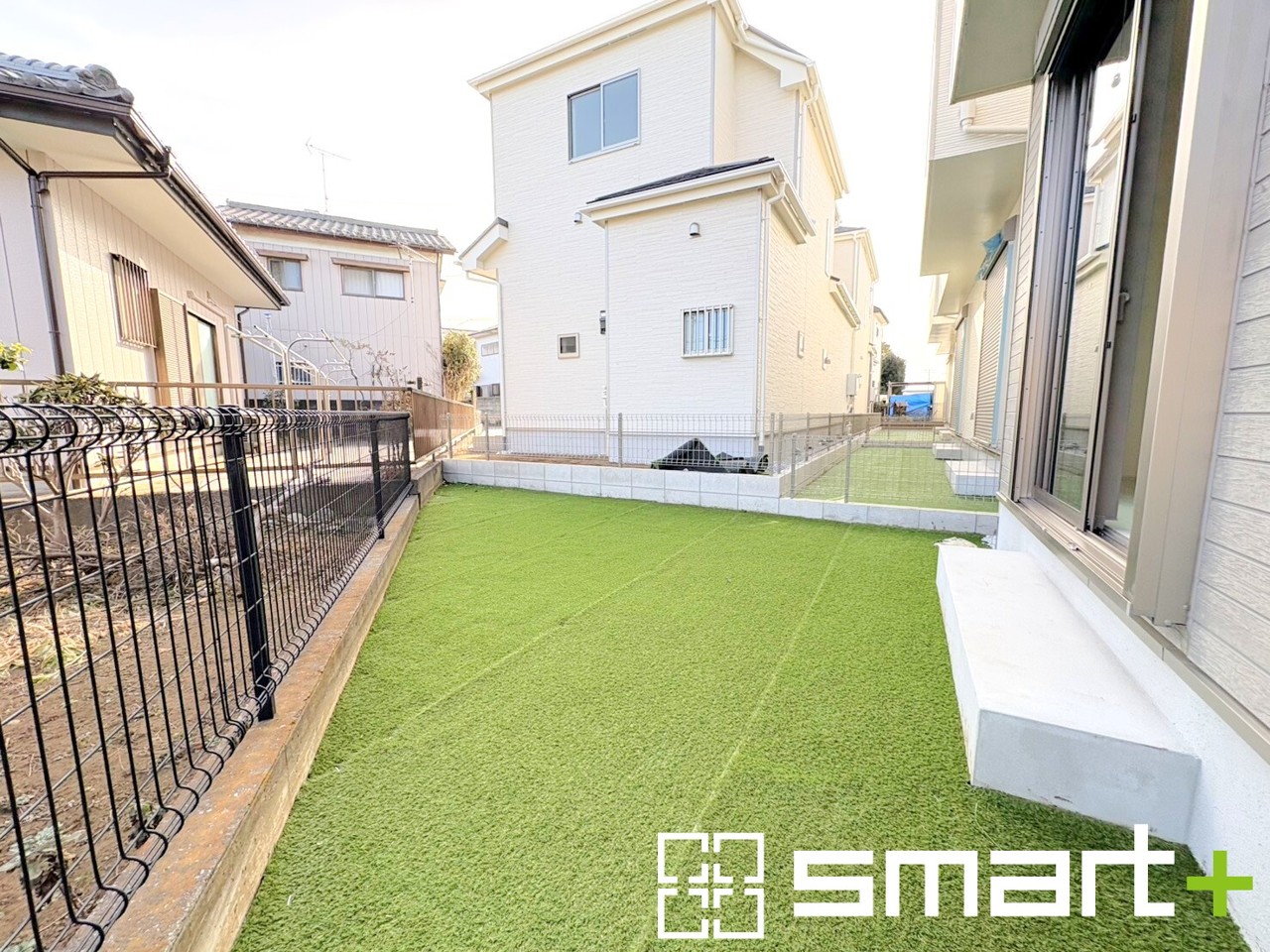 ~人工芝のある綺麗なお庭~ ・標準で人工芝を敷設しておりますので、見た目にも綺麗なお庭となっております。 ・人工芝の場合雑草が生えてこず、管理が楽なのも嬉しいポイントです。