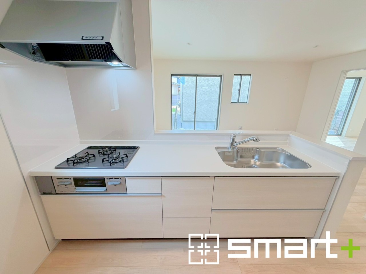 A号棟 ~人気のカウンターキッチン~ ・キッチンには余計な柱が無いので、リビングが見渡せ開放感のある造りとなっております。 ・蛇口には浄水器が内蔵されるなど機能面でも優れたキッチンです。