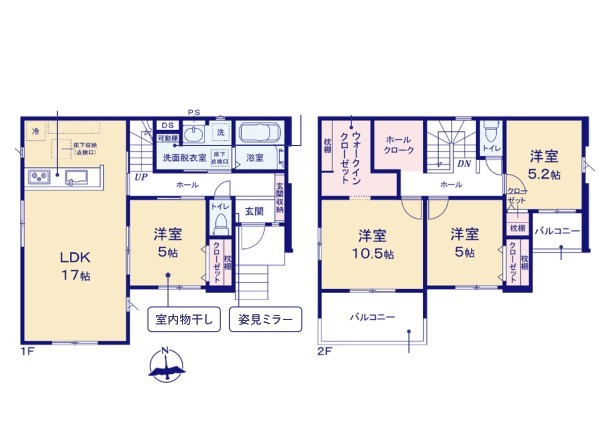 | 間取 | 4LDK (LDK17帖、洋室10.5帖、洋室5.2帖、洋室5帖、洋室5帖) | ||