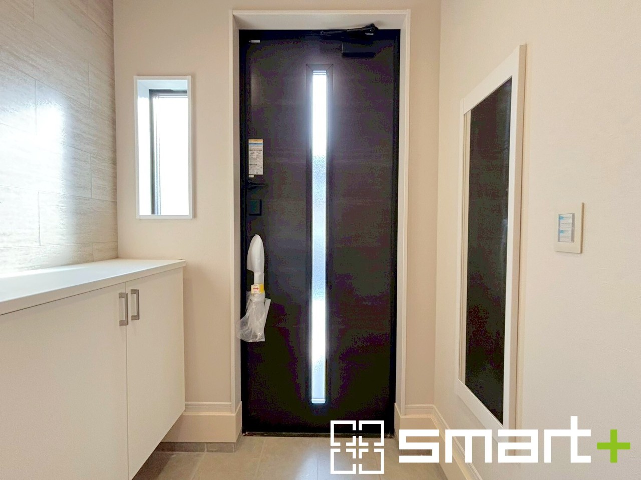 ~穏やかな陽が入る玄関~ ・窓に加えて玄関ドアのガラス部分からも穏やかな陽が入り、明るい玄関になります。 ・備え付けのシューズボックスはたっぷりしまえて玄関がスッキリ片付きますね。