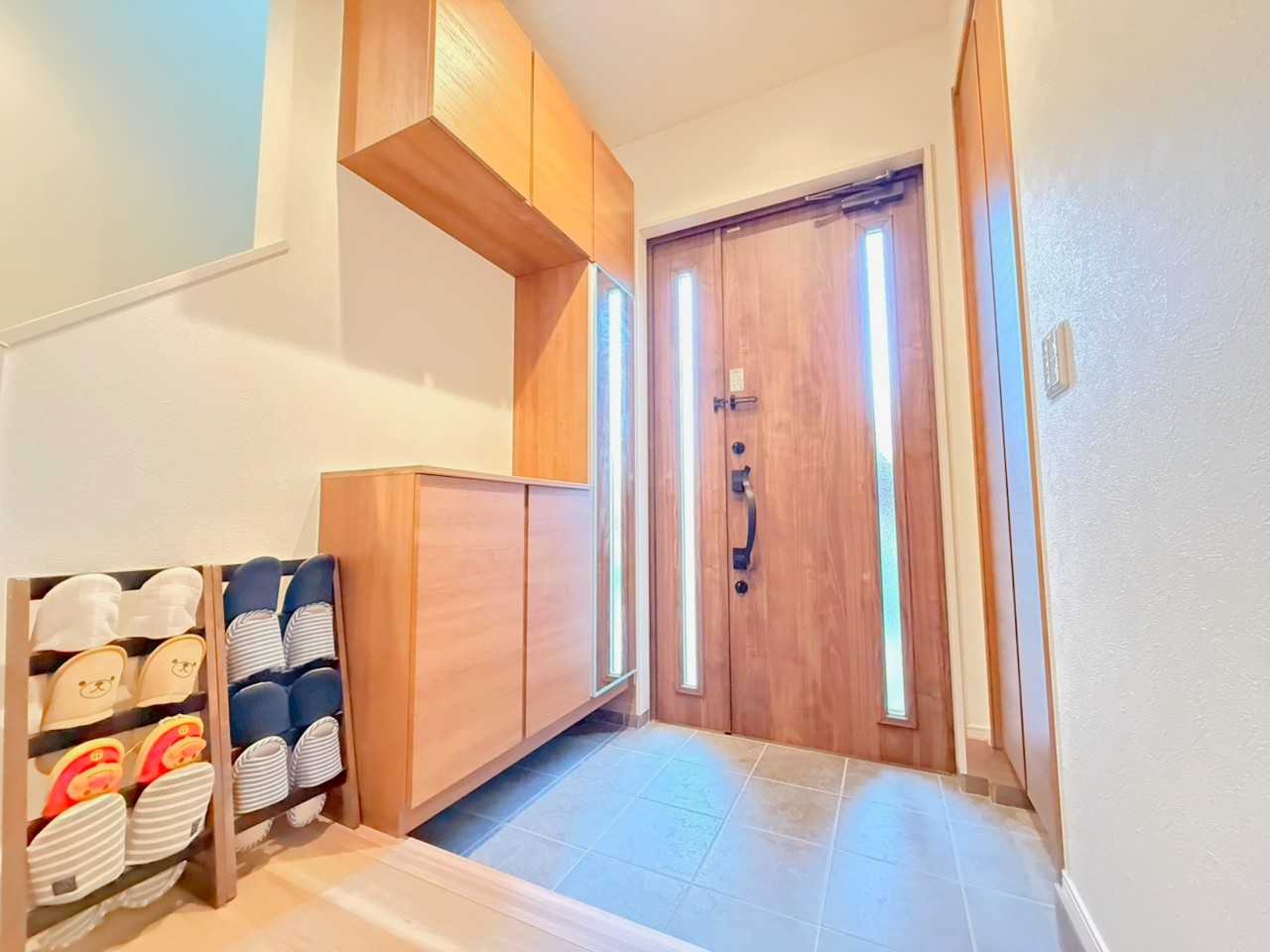 ~シューズインクロークのある玄関~ ・玄関横にシューズインクロークをご用意。 ・追加の靴置きとしてはもちろん、スキー・ゴルフなど趣味の用具の置場としてもご利用いただけます。