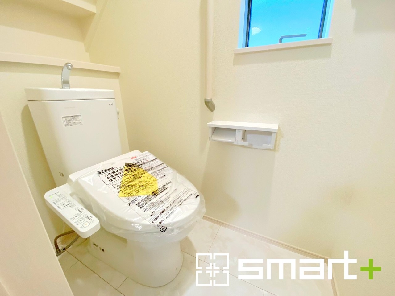 ~窓付きの明るいトイレ~ ・清潔感あるシャワートイレ。窓があるので換気もしやすく快適ですね。 ・背面にある棚はトイレットペーパーなどの置き場や飾り棚としても利用できますね。