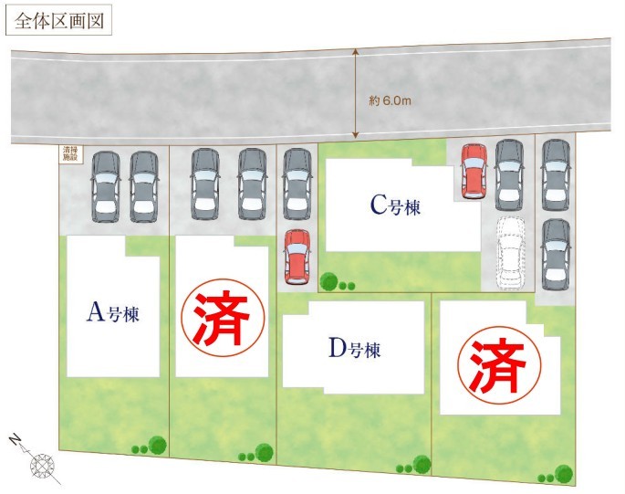 ~カースペース2台以上確保~ ・各棟カースペースが2台以上ございますので、車通勤の方にもお勧めのプランとなっております。 ・余裕の敷地で余裕のある新生活をお過ごしいただけます。
