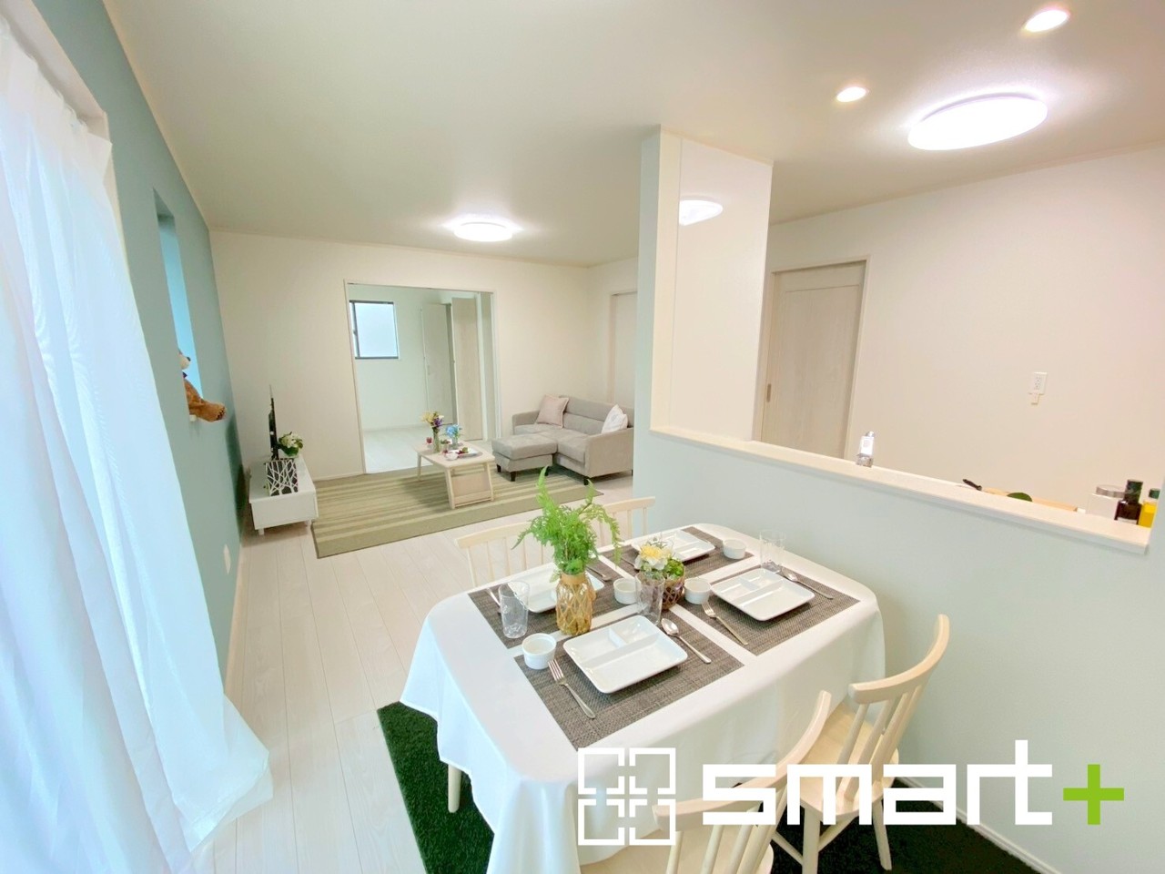 C号棟 ~家族団らんにピッタリの広々リビング~ ・穏やかな陽だまりに包まれる居心地の良いLDKは、ご家族が集まる憩いのスペースに。 ・隣接の洋室を続き間として利用すれば20帖超の広々空間になります。