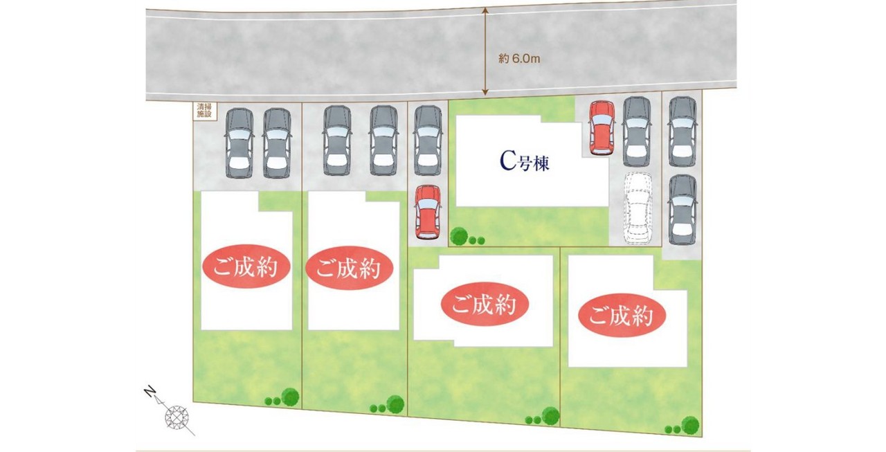 ~カースペース2台以上確保~ ・各棟カースペースが2台以上ございますので、車通勤の方にもお勧めのプランとなっております。 ・余裕の敷地で余裕のある新生活をお過ごしいただけます。