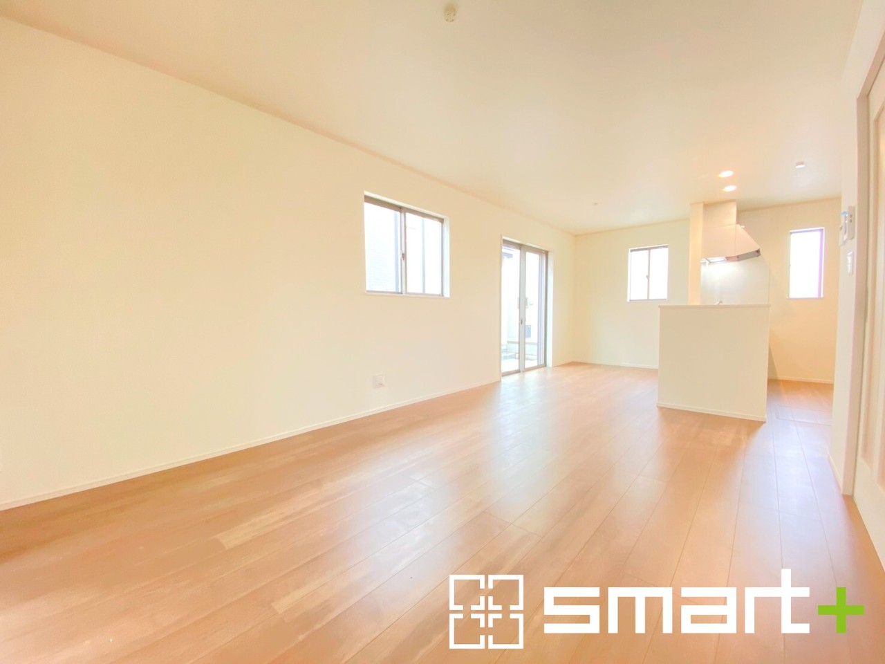 C号棟 ~穏やかな陽の入るLDK~ ・大きな窓のあるLDKは陽当りも良好で明るい空間となっております。 ・ご家族団らんなど過ごす時間の多いLDKが明るいのは嬉しいポイントですね。