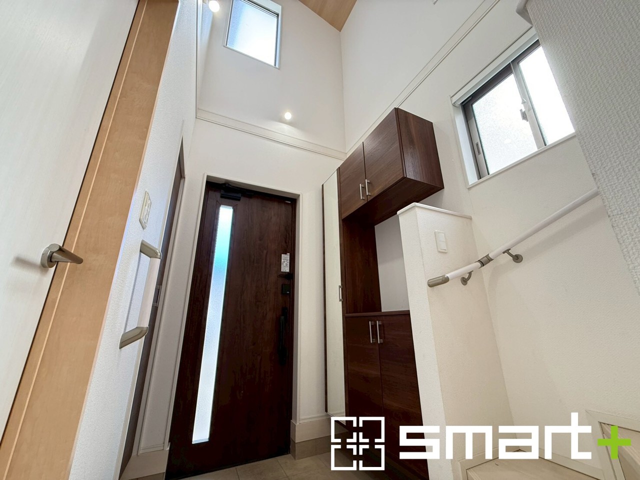 ~吹抜けのある玄関~ ・玄関に吹抜けを設ける事で縦への開放感が広がります。 ・暗くなりがちな玄関も穏やかな陽が入り明るくなるので、帰宅した際の気分が違いますね。