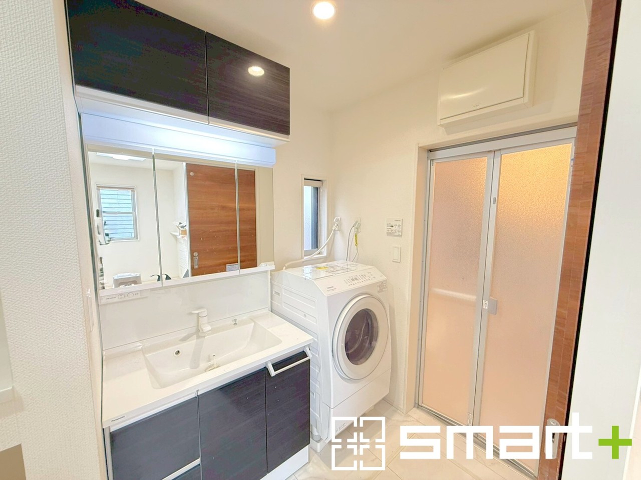 ~人気の三面鏡を採用~ ・洗面台は三面鏡仕様なので鏡の角度を変える事で頭の後ろの方までご確認可能です。 ・鏡の裏が収納になっておりますので、洗面台周りもスッキリと片付きます。
