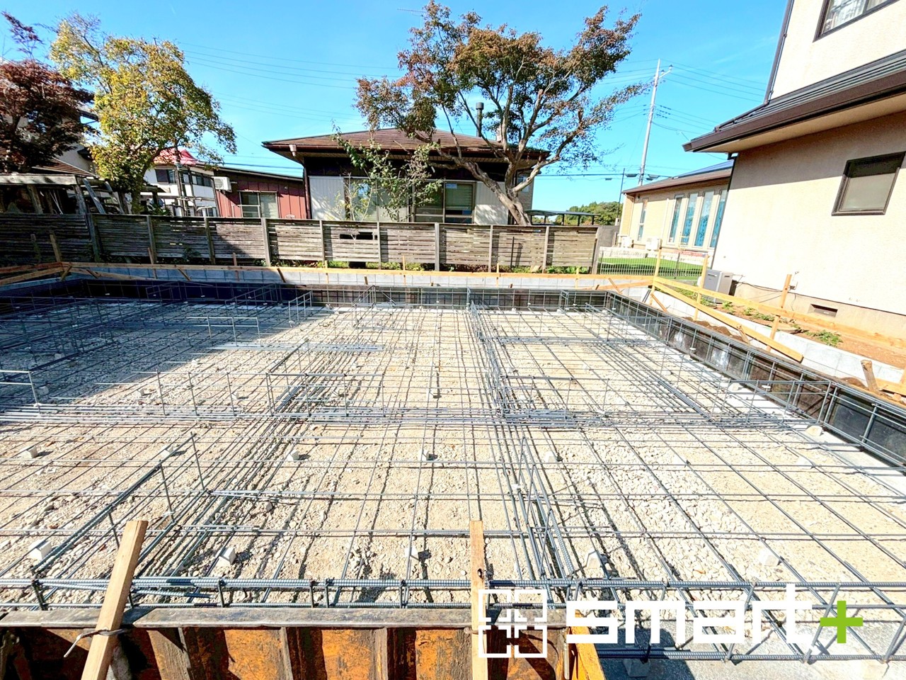 ~ベタ基礎でしっかりとした土台~ ・コンクリートの中に鉄筋を配し強度を高めた「ベタ基礎」を採用。 ・しっかりとした土台を造ったうえで、その上に建物が築造されていきます。