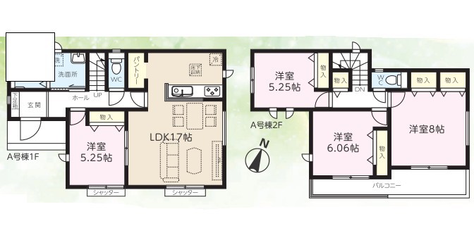 | 間取 | 4LDK (LDK17帖、洋室8帖、洋室6.06帖、洋室5.25帖、洋室5.25帖) | ||