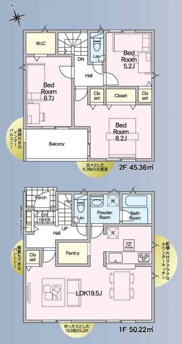 1号棟 ~収納豊富なプランを採用~ ・ウォークインクローゼット、パントリーなど収納豊富なプランを採用。 ・今のお住まいと収納力をぜひ比較してみてください。