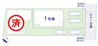 1号棟 ~カースペース2台以上確保~ ・各棟カースペースが2台以上ございますので、車通勤の方にもお勧めのプランとなっております。 ・余裕の敷地で余裕のある新生活をお過ごしいただけます。