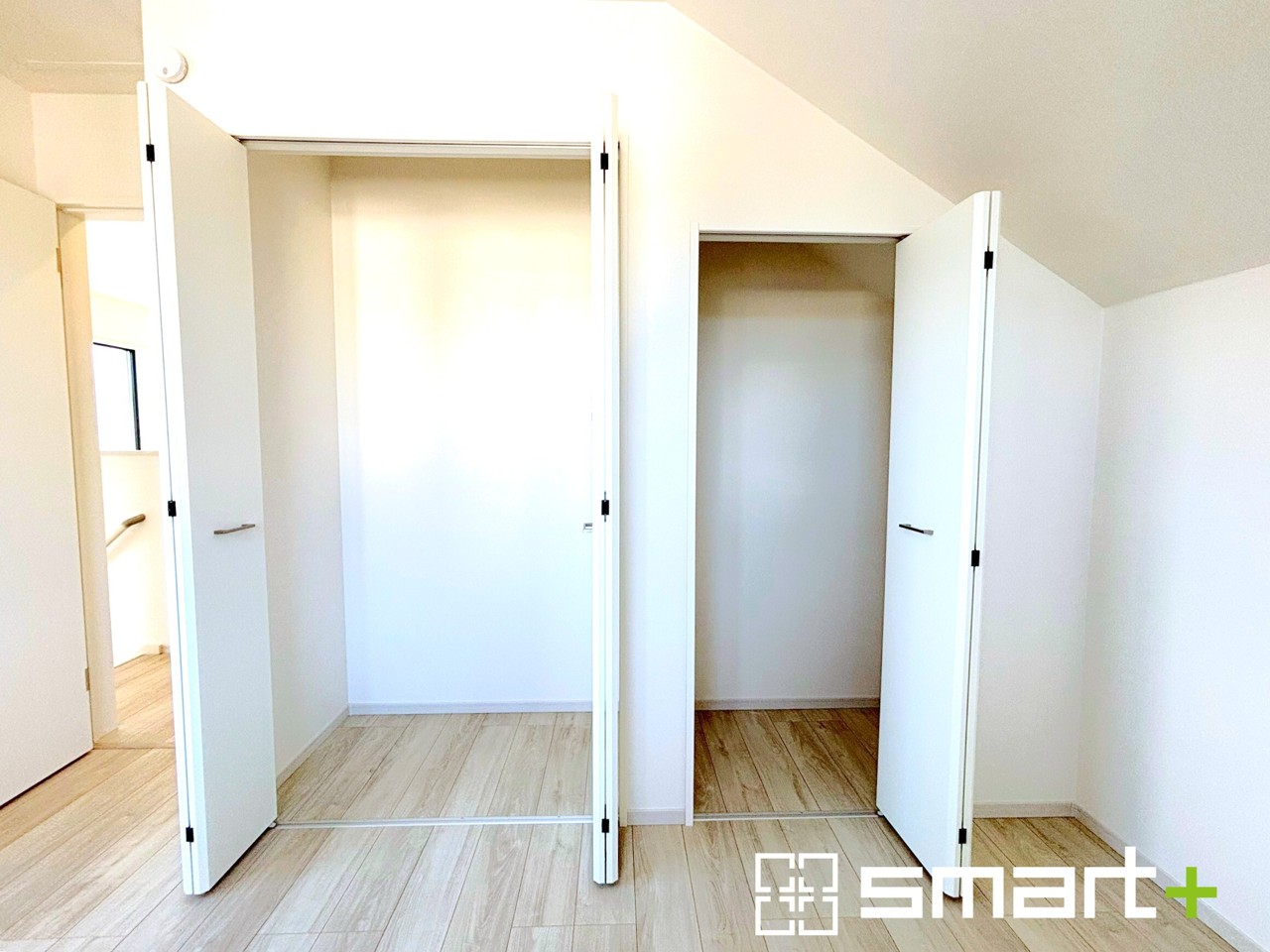 1号棟 ~収納豊富な洋室~ ・各居室に備え付けの収納をご用意。タンスなどを置く場合と比べ出っ張らないので部屋の中を有効のご活用いただけます。 ・収納の広さなどぜひ現地でご確認くださいませ。