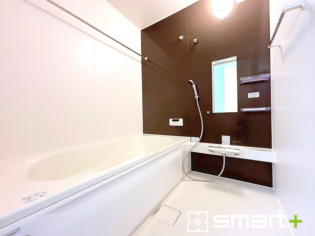 1号棟 ~暖房乾燥機付きの浴室~ ・ヒートショック対策にもなる浴室暖房を標準装備。冬場でも暖かくしてからご入浴が可能です。 ・もちろん乾燥機も付いておりますので、雨の日でも洗濯物を干せますよ。