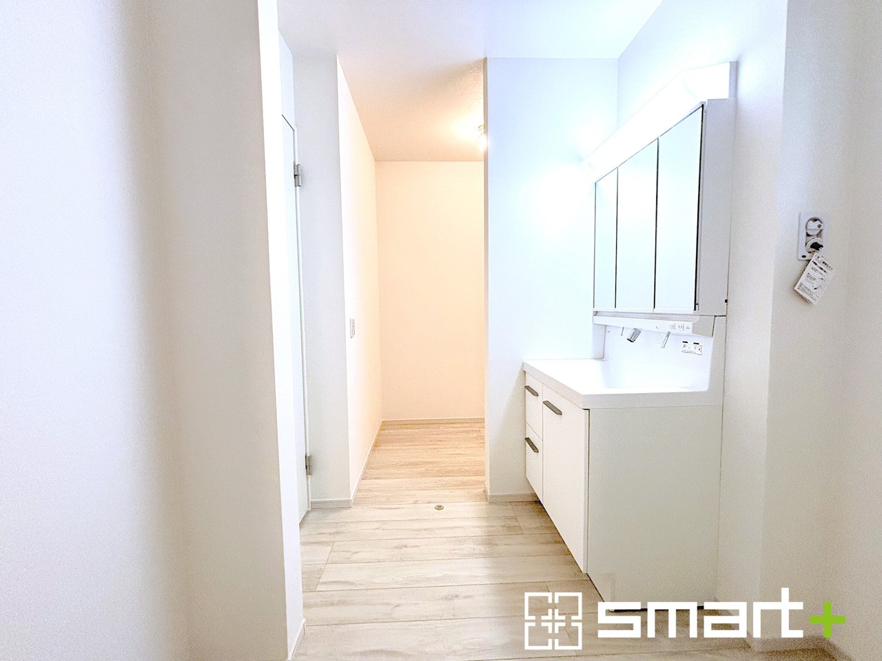 1号棟 ~余裕のある広さの洗面スペース~ ・洗面スペースを大きめに取る事でリネン置場などにも困らず、洗濯なども楽々行っていただけます。 ・洗面が広い物件は意外と少ないので、ぜひご覧くださいませ。