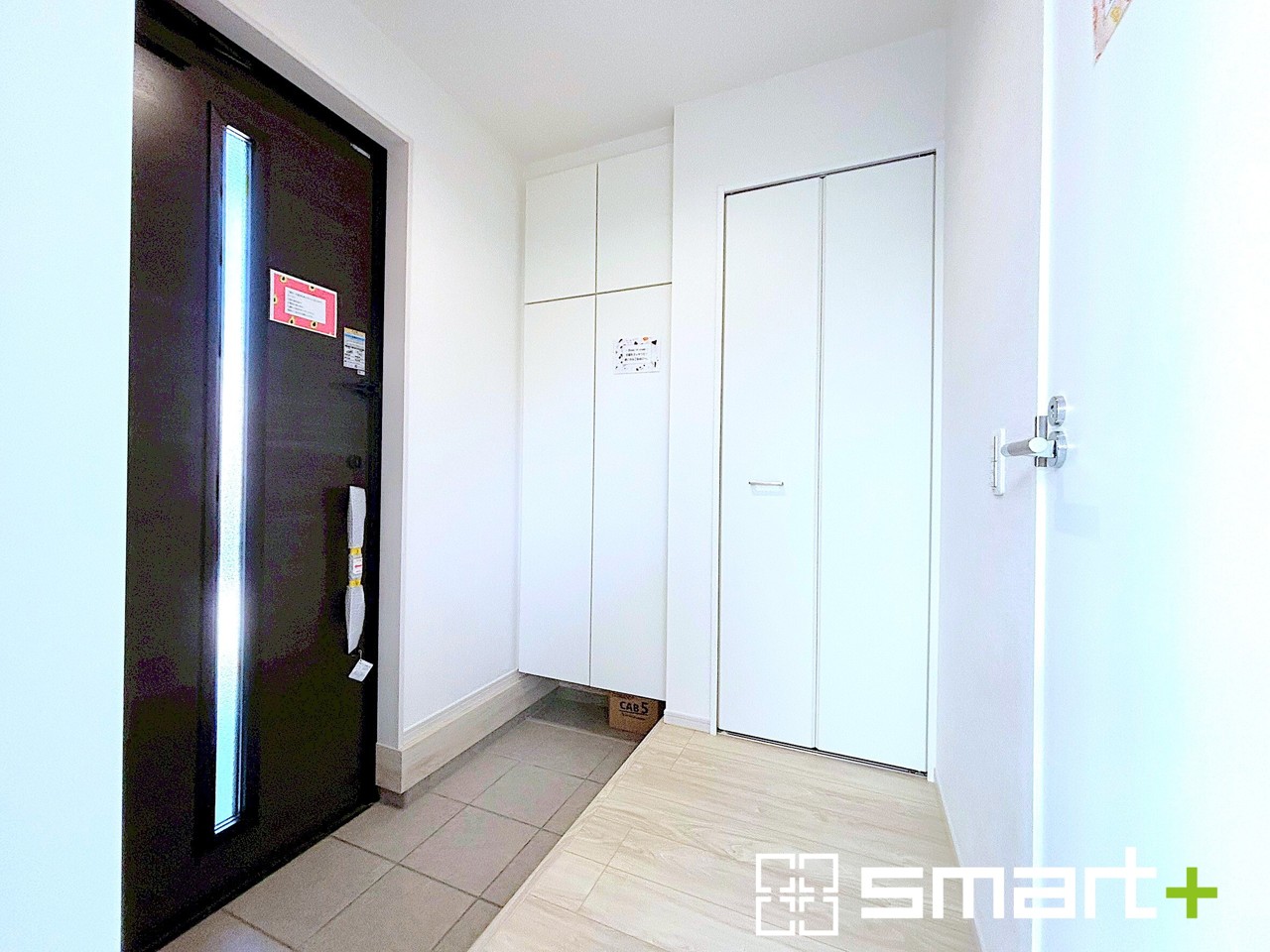 ~穏やかな陽が入る玄関~ ・玄関ドアにガラス部分を設ける事で穏やかな陽の入る玄関になります。 ・備え付けのシューズボックスはたっぷりしまえて玄関がスッキリ片付きますね。 (1号棟)