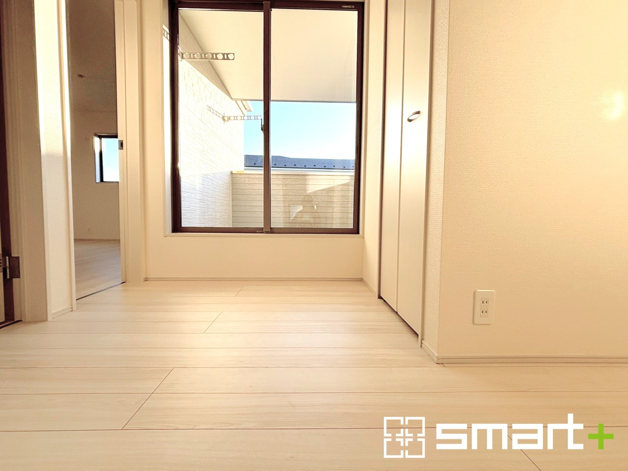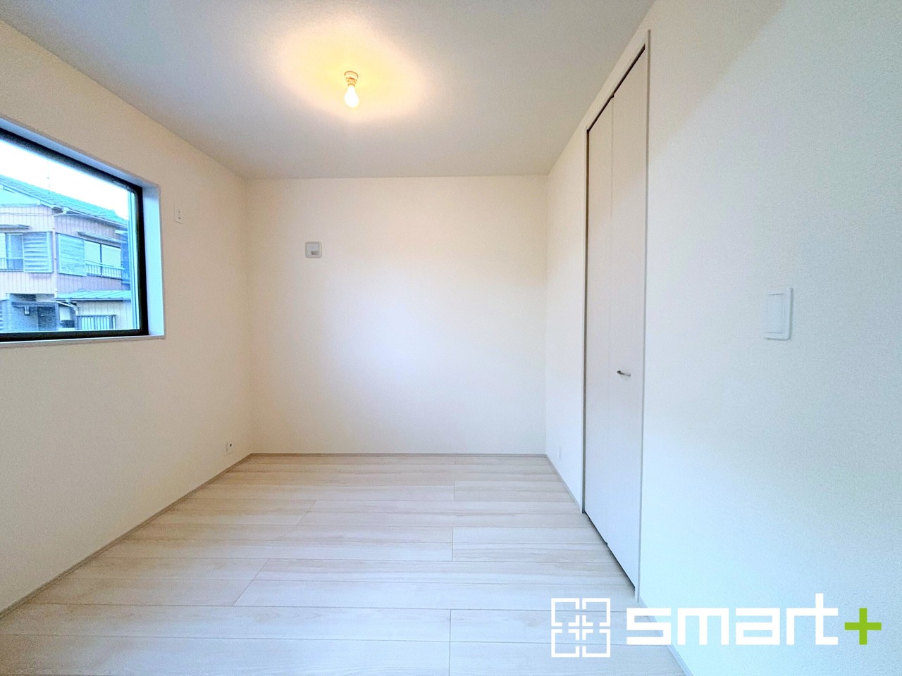 1号棟 ~収納豊富な洋室~ ・各居室に備え付けの収納をご用意。タンスなどを置く場合と比べ出っ張らないので部屋の中を有効のご活用いただけます。 ・収納の広さなどぜひ現地でご確認くださいませ。