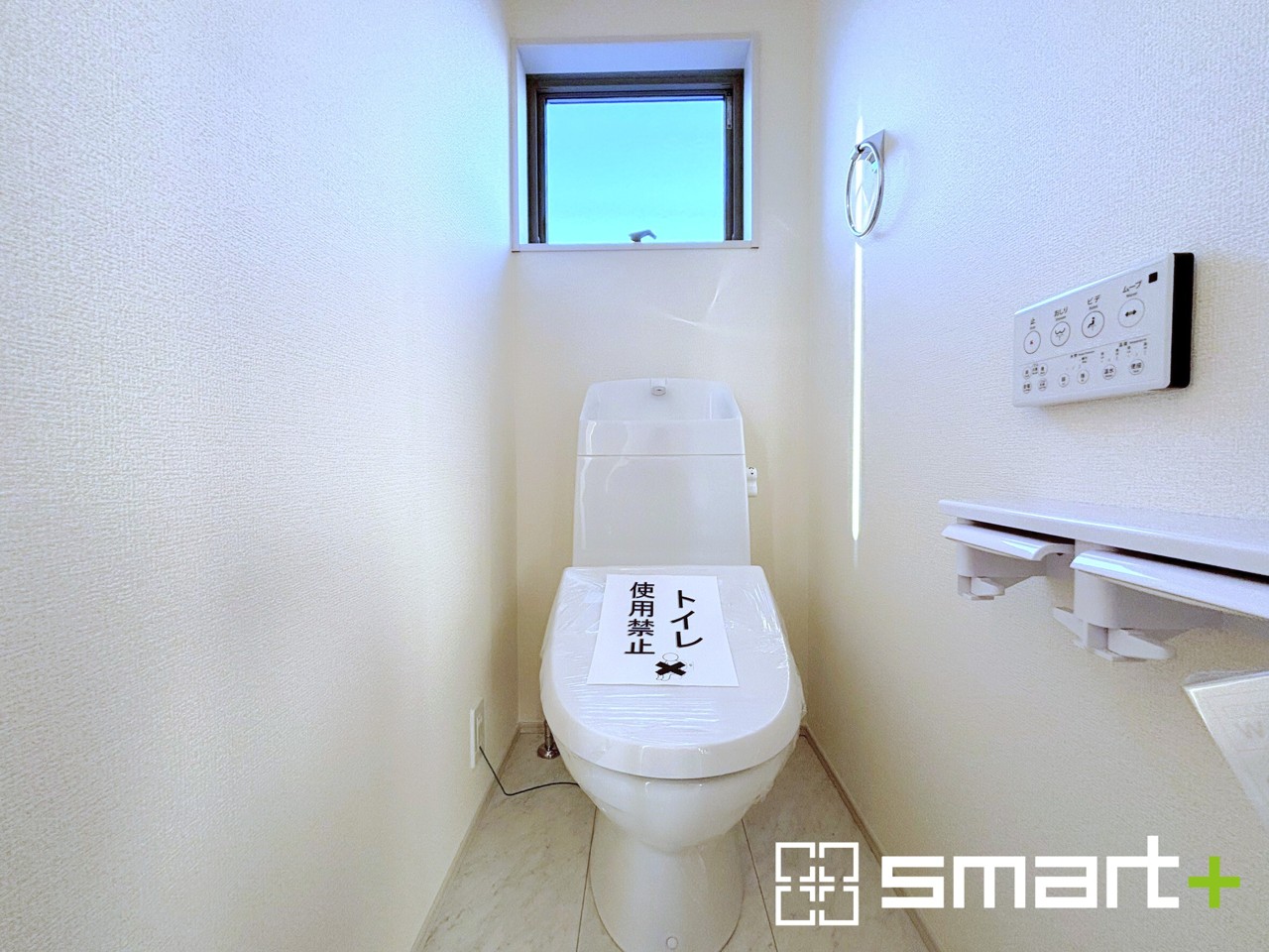 ~窓付きの明るいトイレ~ ・外からの日差しを取り込むので、昼間は窓からの光で十分ですね。 ・使用後や掃除の際に窓を開ければ、外からの新鮮な空気を取り込み素早く換気ができます。 (1号棟)