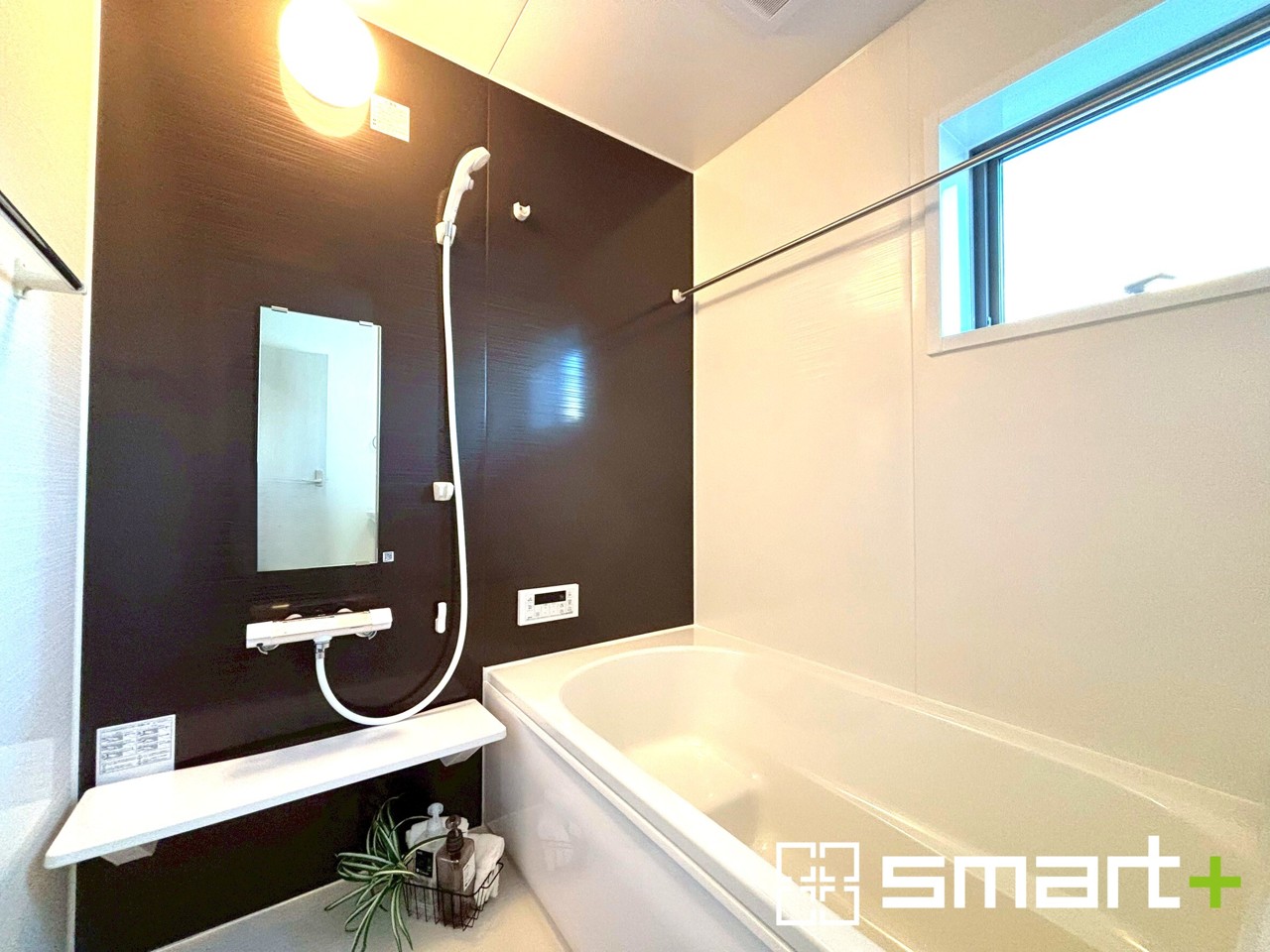 1号棟 ~浴室乾燥機付きの浴室~ ・浴室には乾燥機が付いているので雨の日でも洗濯物を干すことが可能です。 ・水はけの良い床材など機能面も充実。マイクロバルなどオプションもご相談くださいませ。