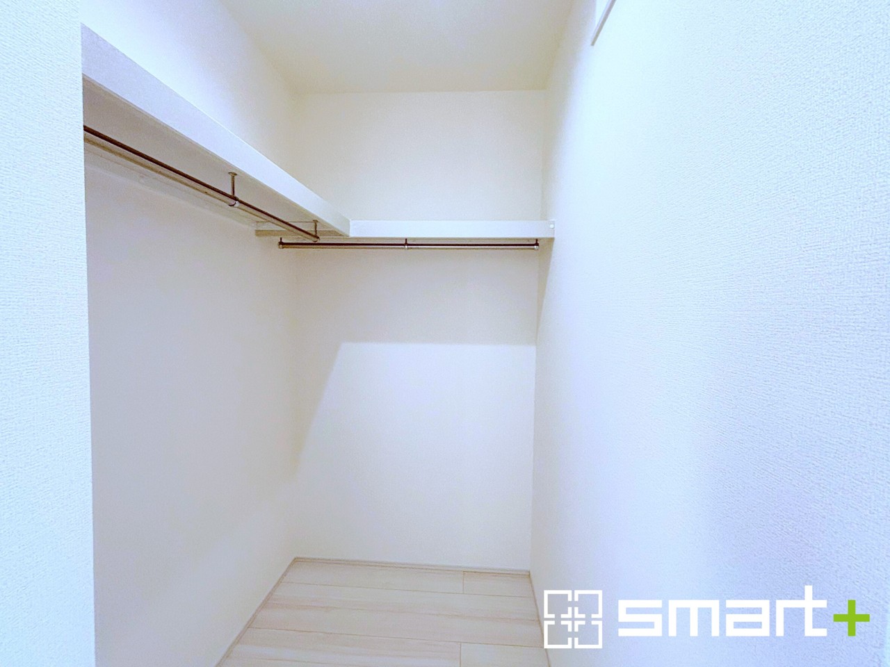 1号棟 ~ウォークインクローゼット~ ・衣類をハンガーに掛けたまま収納できるウォークインクローゼットは重宝しますね。 ・季節ものや小物類なども整理整頓しやすく生活空間が広がります。