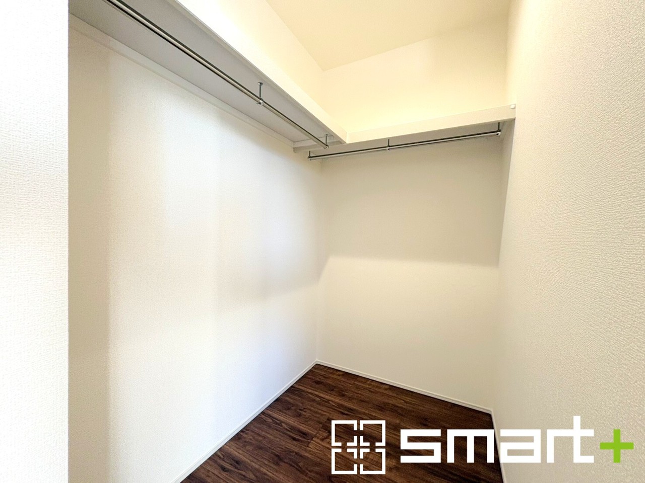 ~憧れのウォークインクローゼット~ ・居室にウォークインを設ける事で季節ものや趣味の用具などもスッキリと収納可能です。 ・ぜひ現地でその便利さをご体感くださいませ。