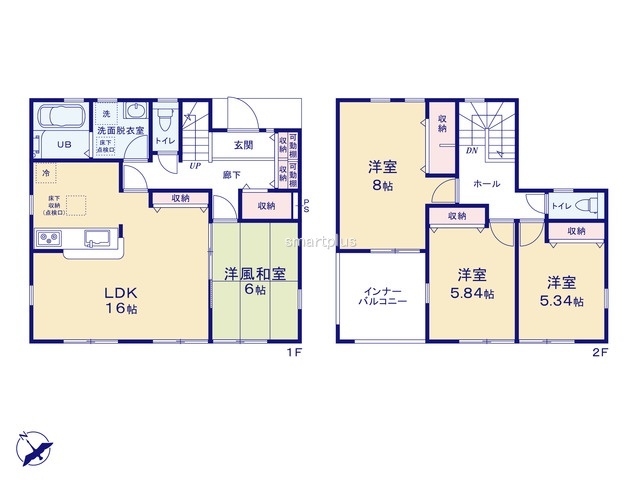 2号棟 ~使い勝手の良い4LDKプラン~ ・シンプルで使い勝手が良く、人気の高い4LDKのプランを採用。 ・収納もしっかりございますので、お家の中がスッキリと片付きます。