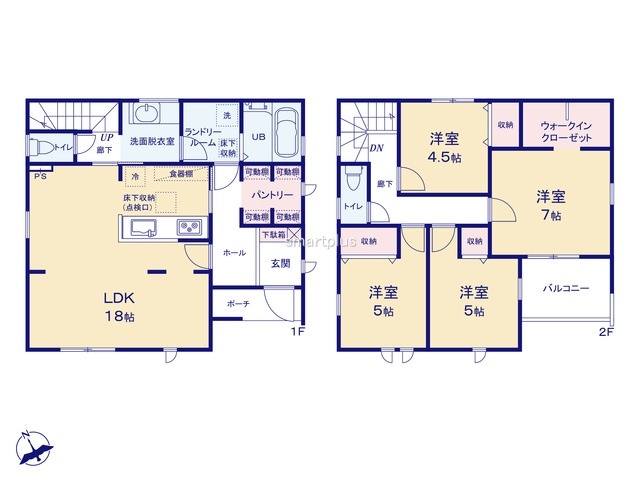 1号棟 ~収納豊富なプランを採用~ ・ウォークインクローゼット、パントリーなど収納豊富なプランを採用。 ・今のお住まいと収納力をぜひ比較してみてください。