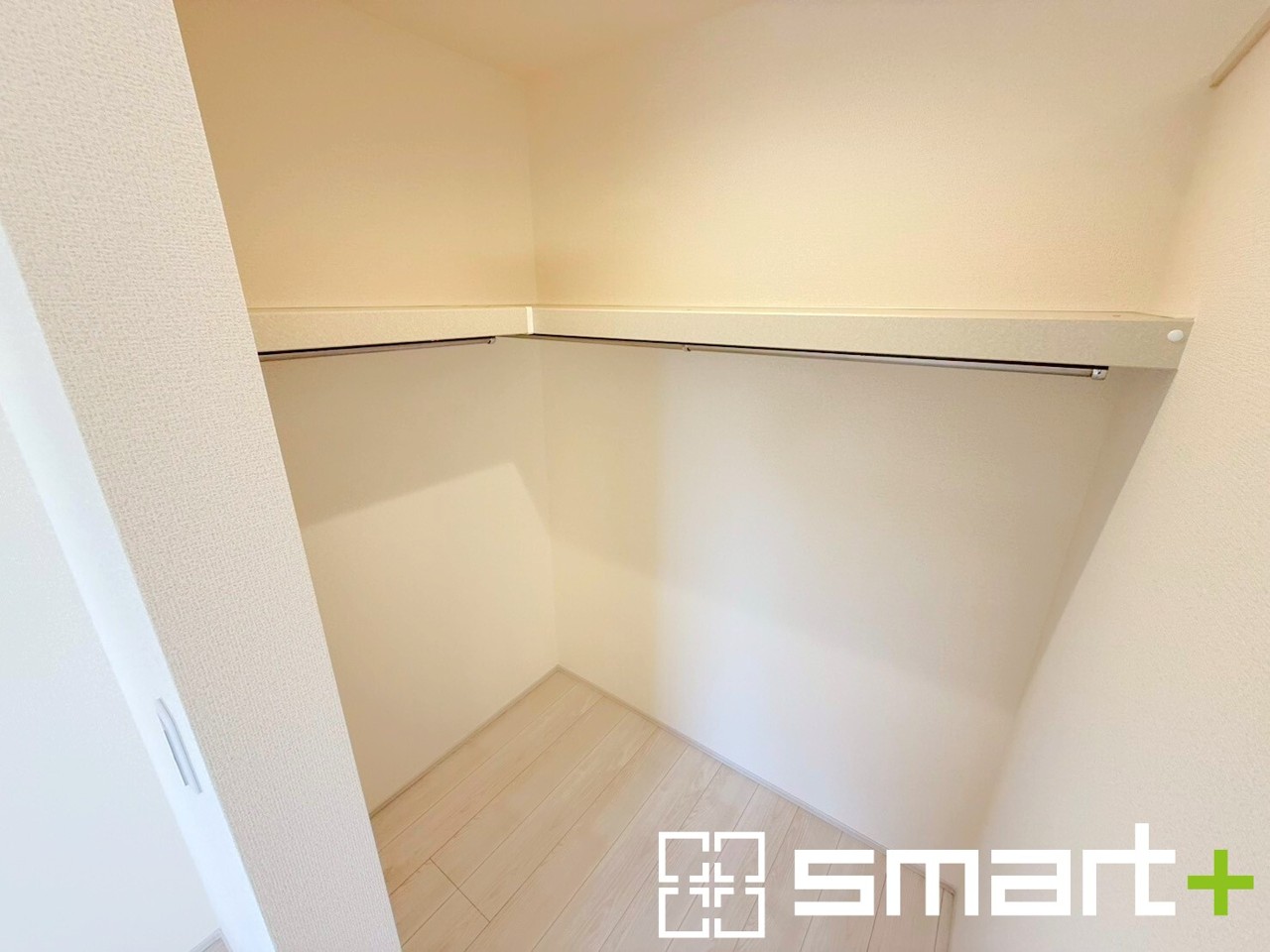 ~憧れのウォークインクローゼット~ ・居室にウォークインを設ける事で季節ものや趣味の用具などもスッキリと収納可能です。 ・ぜひ現地でその便利さをご体感くださいませ。