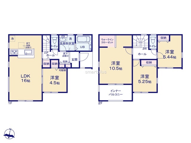 2号棟 ~使い勝手の良い4LDKプラン~ ・シンプルで使い勝手が良く、人気の高い4LDKのプランを採用。 ・収納もしっかりございますので、お家の中がスッキリと片付きます。