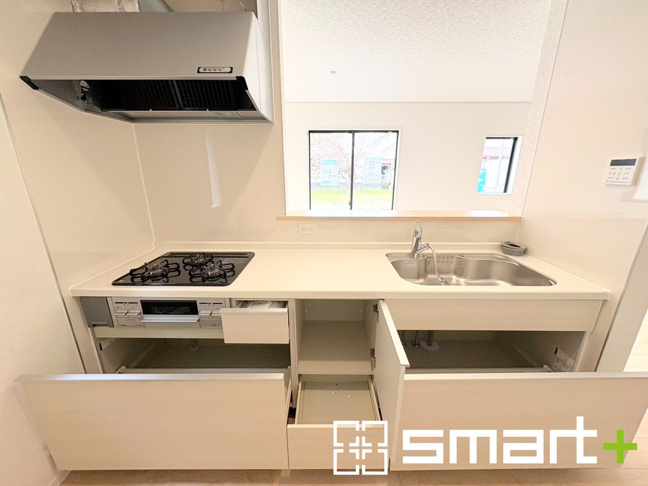 ~使い勝手の良いシステムキッチン~ ・料理がしやすい設計のキッチンでお料理もはかどりますね。 ・もちろんキッチン下部は収納になっておりますので、フライパンなども収納可能です。